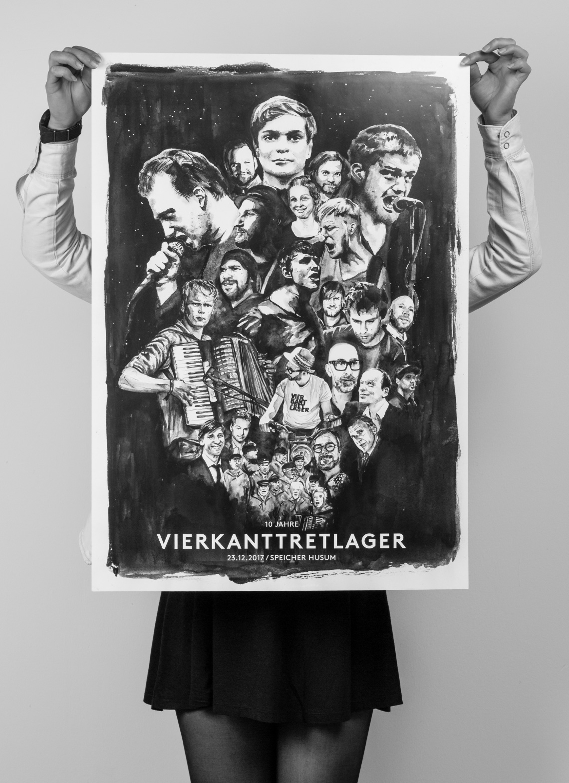 10 Jahre Vierkanttretlager. Für das ausverkaufte Jubiläumskonzert in ihrer Heimatstadt wünschte sich die Band ein Plakat auf dem die Musiker selbst, vor...